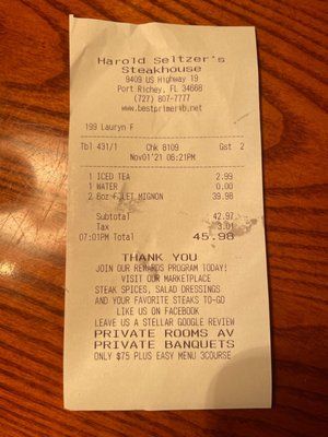Harold Seltzer S Steak House Port Richey Menu Prices Restaurant Reviews Tripadvisor